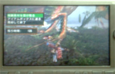 「モンスターハンターポータブル2G」。 またしてもニコニコに上がってたナルガクルガ戦の凄い動画。今度は訓練所のライトボウガンなんですが、動き的には以前紹介したヘヴィボウガンより弓に近いかと。 それぞれの動きはへヴィと似てますが、歩く速度が違うのでへヴィだと回避行動が必要なところもライトだとそのまま歩いて避けれてました。それと尻尾は距離を見切ってそのままスルーする感じ。 唯一面倒なのは尻尾から放たれる手裏剣のようなもの。微妙に弾速が遅いようで回避行動でも避けずらいようです。 http://www.nicovideo.jp/watch/sm2886697 また動画へのリンクを張らせていただきます_(._.)_ こういった動画を見てたらなんだか私も楽にナルガクルガを倒せるんじゃないかと錯覚してきましたよ・・・・・(@_@) それでその錯覚がどこまで通用するか実際戦ってみたら・・・・・・十分の一くらいの再現率でした・・・orz 確かにそれぞれの攻撃に対する対処の仕方は良くなりました。が、やはり慣れてないとどうしても動作に遅れが出て・・・・結局それが致命傷となってアウト。 せめて回避性能アップのスキルでもつければまだやれるのかねぇ・・・・? さて、話はフルフル狩りに戻って・・・あれだけ頑張って集めたフルフルZ用の素材。しかし、いざフルフルZ防具一式を作ってみるとなんとなく使い勝手がいまいち(´д`) 元々のスキルで高級耳栓と広域化+1がついててスロットは11個空いてるのでなんとなく使えそうですが、正直今ある他の防具と色々かぶったり見劣ったりと考えもの。 まー、明確に何かやりたくなったら改めて作ってみますか・・・・で、代わりと言ってはなんですが、「フルフルボウI」を作ってみました。 雷属性の結構強い弓で、ため2が貫通、ため3が拡散とちょっと癖はありますが、甲殻系にはそこそこ使えるかな~と。 それでこの武器を更に強化しようとしたのですが、必要素材にG級のイャンガルルガのがあって撃沈。一応クエストは出てるので戦えるのですが・・・・村上位のイャンガルルガの異様な強さを体感した経験が、今現在の武器のままでは無理無茶と心と体が悲鳴をあげてます(⊃д⊂) しかしいつまでも毛嫌いする訳にもいかないので、ここはなんとか水属性の強い弓を作る事を画策。それで挙がったのがオオバサミIVの一つ上である「オオムラサキバサミI」。 これを作る素材は・・・・私の苦手な甲殻系であるダイミョウザザミ、ダイミョウザザミ亜種。それとガノトトス亜種のになります。 ダイミョウザザミ亜種のは以前狩った時手に入れたので足りてたので残るは二つ。とりあえずこの面子の中では一番弱そうなダイミョウザザミから狩りにいってみます。 武器は先ほど作ったばかりのフルフルボウI。矢を撃つたびに変な鳴き声みたいのが鳴るが不気味ですが、さすがの威力。G級ダイミョウザザミを19分ほどで倒してしまいましたよ! これがあればガノトトス亜種も楽にやれるか・・・・?と淡い期待をしつつ出陣。 結果は惨敗(´д`) しかし武器が悪かった訳ではなく、問題はその他。G級のガノトトス亜種は旧密林のエリア3と7を行ったりきたりしてるのですが、エリア7はイーオスとランゴスタがいるだけで、しかもイーオスは総数四匹しかいないので殲滅も楽々。 問題はエリア3。ここにはやたらでかいランゴスタが相当数いるのですが、実は数に限りがあって殲滅も可能です。なので問題は別にあり・・・・それは鬱蒼とした木々が恐ろしく邪魔な事!! ガノトトス亜種のちょっと緑がかった色とあいまって、下手したらあの巨体がまったく見えないなんていう事もしばしば。 更にエリア3の狭さも問題の一つで、あの巨体が狭いエリア3で暴れるとかなりきついです。 何度か挑戦したのですが・・・・やはりエリア3がかなり鬼門。それと本作でのガノトトスの動きをあまり把握しきってないのも一つの原因っぽいです。 なので先ずはふつーのガノトトスの動きを再検証するべくG級のガノトトス狩りを再びやります。ついでにフルフルボウIと龍弓【日輪】のどちらがガノトトスに有効かも検証。 先ずはガノトトスの動きですが・・・・水中からの突撃が睡眠効果もあってかなり危険なので水際に張り付くのはやめた方がいいです。地上でのなぎ払い水ブレスは、これは結構かわしやすいです。ちょっと近い場所にいればガノトトス側に転がり、離れていたらそのまま転がって離れれば楽に避けれました。 次に弓の検証ですが・・・・やはりため3に貫通がある龍弓【日輪】の方が少しだけ使いやすく倒しやすいかな?フルフルボウIも悪くないから・・・・フルフルボウIIになったらこっちが上になるかもね~。まあ日輪にも上があるのでそっちが出来たらまた逆転するんだろうけど(@_@) ともあれガノトトスがどういう動きをしたらどのアクションをするかは大体把握したので、ガノトトス亜種にリベンジ! エリア3と7の掃除を済ませて狩りを開始。やはりきついのはエリア3での戦闘。