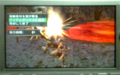 でもまあ、慎重にやればなんとかなったのですが・・・・一頭目を狩り、二頭目を追い詰めてきたかな~と思ったところでシビレ罠をしかけ、捕獲しようとしたら・・・・あれ?捕獲用麻酔玉がない・・・・つーか思いっきり忘れてるorz