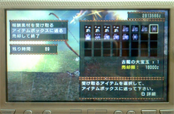 オオナヅチをトータルで二十回以上やってようやく古龍の大宝玉が出ました!ヽ(´ー`)ノ