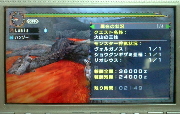 祖龍を出すべくG級星三つの連続狩猟クエスト巡りの続き。