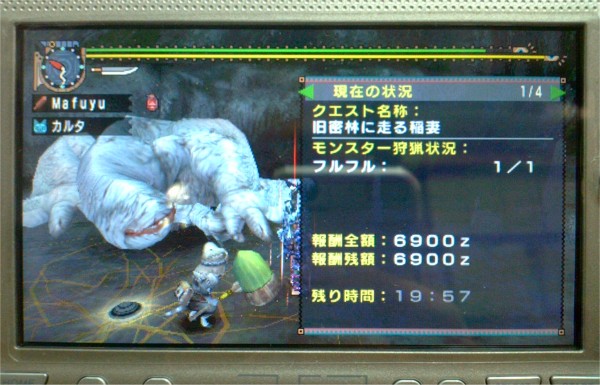 まあお試しも兼ねて上位フルフルを狩ってみるか~・・・と軽い気持ちで挑んだら・・・・捕獲に30分もかかってしまったorz