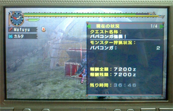 次は「ババコンガ強襲!」。体力の低いババコンガを二頭以上狩れば終わりなので、二頭だけ狩ってさっくりとクリア。