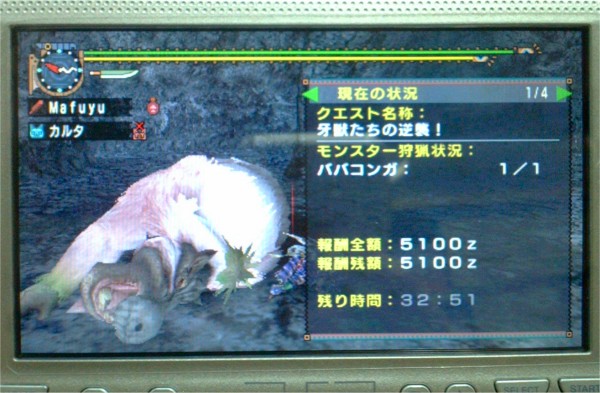 残るはババコンガだけなんですが・・・・こいつには効きが悪かった。こいつにデンプシーを決めるチャンスがほとんど無く、麻痺らせる事が難しかった。