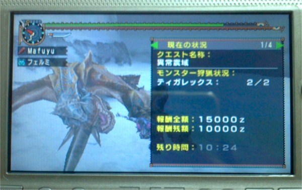 しかもちょこちょこエリア移動されて振り回されるし、振り向き様に溜め斬りを当てるもののひるんでくれずにそのまま大ダメージとか、かなりの苦戦。