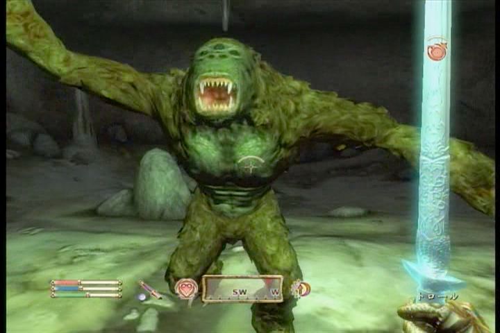 で、サクサクとモンスターを倒していって最深部。そこでボスっぽいトロール(外見は雑魚と一緒)と遭遇。これが強い!攻撃力も高いが、その体力・・・・・というか自己回復能力の高さに脱帽。半端な攻撃ではすぐに回復されるので一気に攻め込みたいのだが、動きが速く、隙が少ないので攻めきれない状況が続き大苦戦。