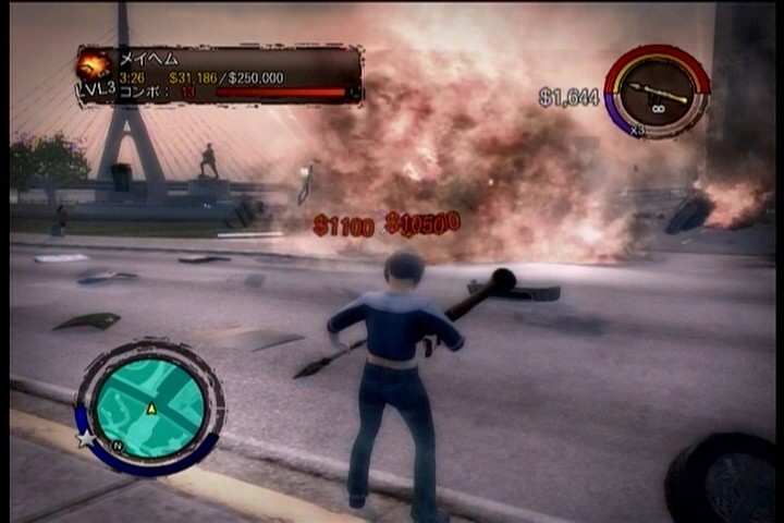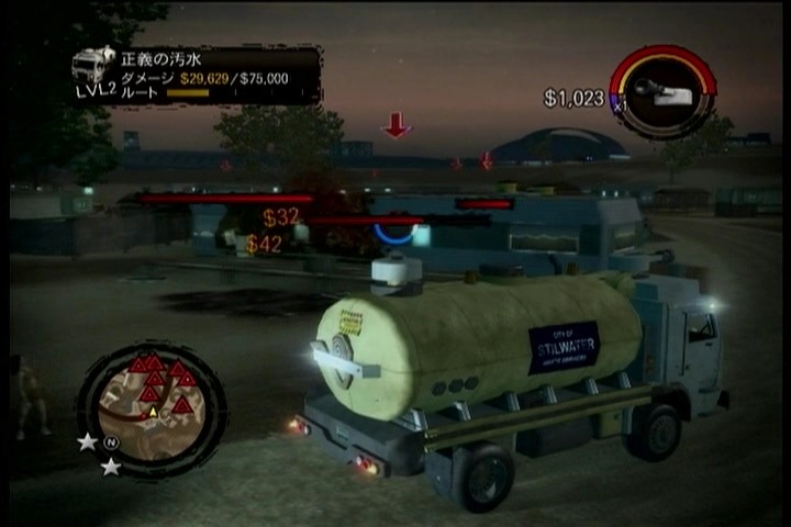 ミッションは前作より様々なのが増えてるようですが、早速体験できたのは「正義の汚水」というやつ。建物などに汚水をぶちまけるだけというすばらしいアホ全開な内容です。