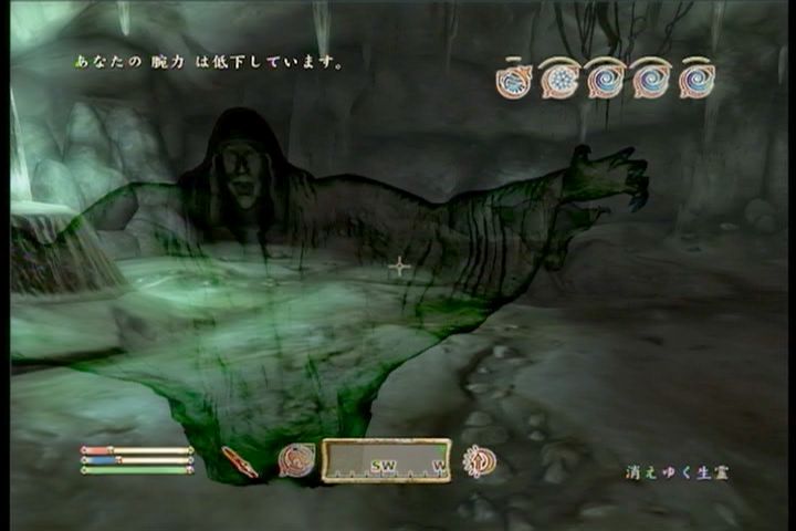 で、こんなチキンなヤツはほっといて私が「落盤の洞穴」へ行く事に。そして「落盤の洞穴」に入ってみたら・・・・・新人戦士が仕事を放棄したのが納得。ここはスケルトンやゴーストの巣窟なんですね(´Д`;)ヾ スケルトンはともかく、ゴーストは通常武器が効かず、銀の武器か魔法じゃないと倒せないんですよね。