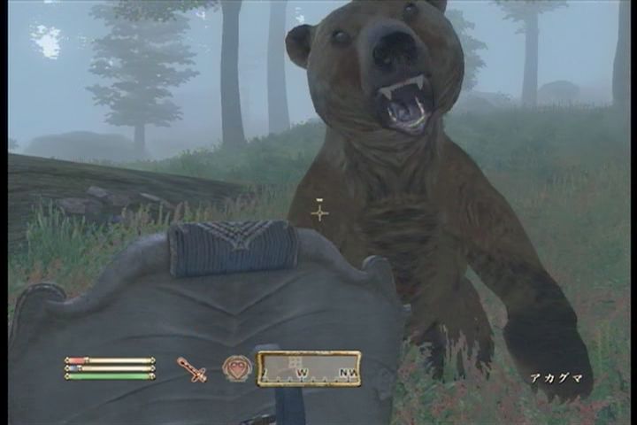 あわてて抜刀し応戦したのですが、狼はともかく熊が強い!攻撃力だけなら今まで相手してきた敵の中でもトップクラス。ガードの上からガリガリ削られていき、危うく食われるところでしたよ(⊃д⊂)