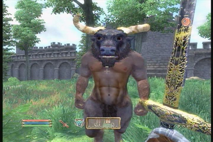 んで、ぺちぺち弱い弓矢で攻撃してたんですが・・・・なかなかスキルが上がらない。未だ素人レベルだというのにスキル上昇率はさっぱり。こんなんでモノになる日はくるんだろうか・・・・と、ダンジョンを抜けてフィールドをふらふらしてたら、いきなりミノタウロスに襲われました!
