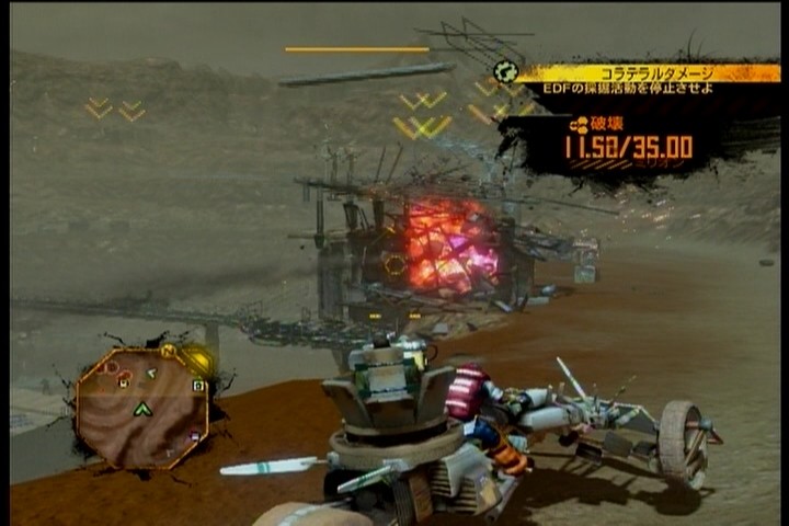 ウォーカー(ロボットみたいなの)や戦車を使って一定数のEDFを倒す「ヘビーアイアン」。ジェンキンスと一緒に武装した車に乗ってEDFの施設を襲撃する「コラテラルダメージ」。