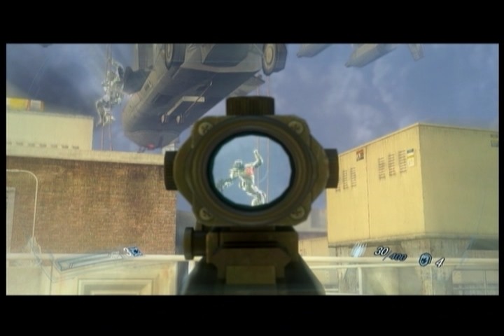 スロー・モーを使えばヘリから降下してくる敵も鴨撃ち状態