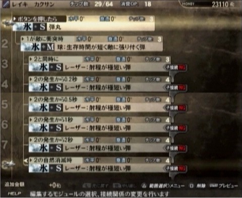 なんかこー、昔遊びでやってたベーシックのプログラムを思い出すかのような感じで、色々設定して繋げて試射してみて・・・と、実に手間がかかります。