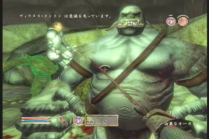 このバカを連れて向かったのはコロールの北にある「ノンウィル洞窟」。中は・・・・・これまた最悪な事に、トロールやオーガの巣窟。しかも常に複数がかたまっているので、そこの突っ込まれると・・・・ああ・・・・この脳筋。思いっ切りリンクしまくってボコボコにされて、ほぼ無傷で残された敵全てがこっちに来るよ( TДT)