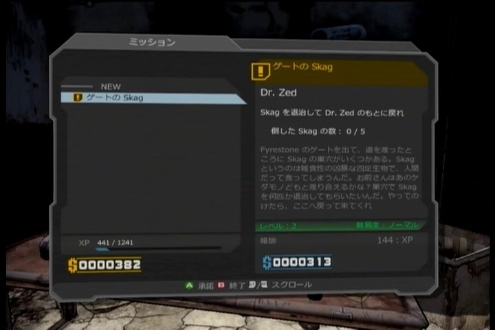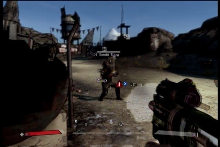 更に進むとNPCからミッションを受けたり、敵を倒すと経験値が入ってレベルアップしたりと、この辺がフォールアウト3っぽい部分ですかね。