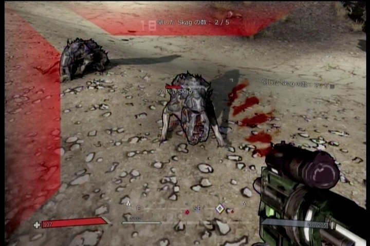 弾が当たるとダメージが数字で出て、倒すと経験値などが手に入る