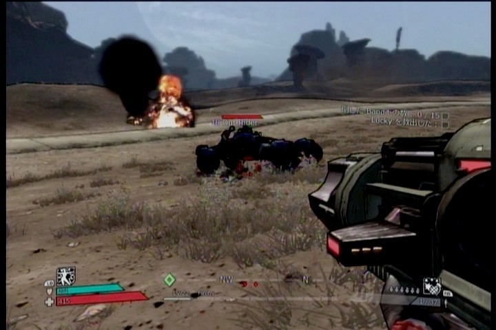 そうなると徒歩ではきつすぎるので移動は当然ビークル。ひゃっほー!とご機嫌で荒野を走ってたら・・・・・・あれ?私以外の車両が走ってる・・・・?