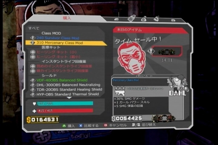ついでに近くにあった自販機を見てたらClass MODで「+5 SMG 弾薬の回復」というのが付いてるのを発見。