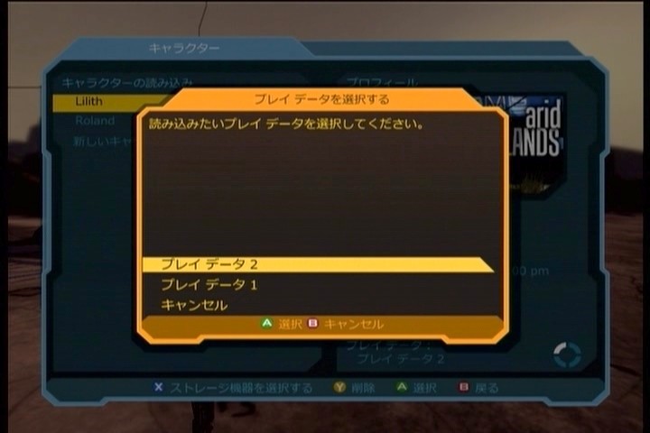 それで、これで終わりかー・・・・と思ったら、ゲームを再開する時に「読み込みたいプレイデータを選択してください」と、プレイデータ1と2が出てきました。