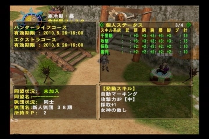 そんなこんなでなんとかハンターランクが2になりました。って、ランクの上がるのに結構かかるね・・・・オンライン専用だとこんなものなのかな?