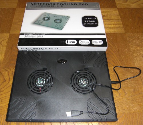 それが「TIMELY ノートPC用冷却スタンド NOTE COOLER 2FAN」。某密林で1000円弱。一番安いブツですね |◎口◎|y-~~~