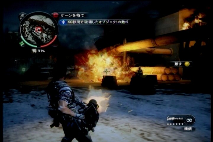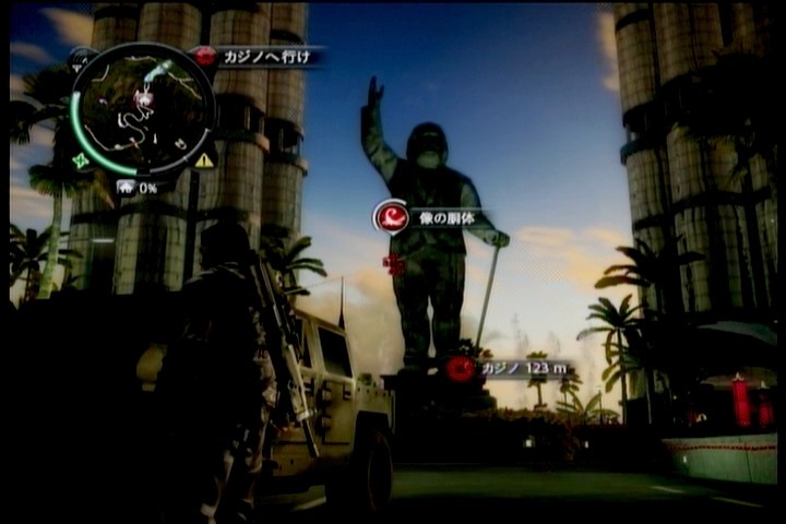 操作方法はほとんど体験版で覚えてて、目新しい事といえば片手持ちできる武器2つを両手に持つデュアルスタイル。銃座に固定されてる機銃を取り外せて、そのまま持ち歩き撃ちまくれるという事。それとワイヤーで大きな像と車を繋いで、車を動かす事で像を倒す事ができるなどです。