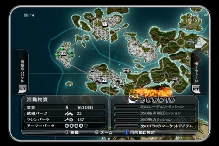 ちなみに、通常エージェントミッションなどの特殊なミッションを出来るようにするためには、色んなところを占領したり、他のミッションをやってカオス(破壊などでたまっていくポイント)を一定以上ためないといけません。