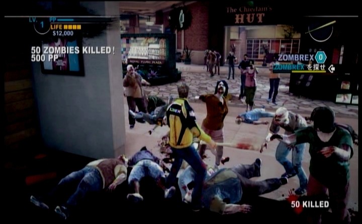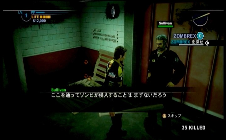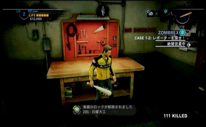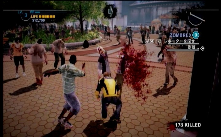 ああ・・・・デッドライジングだなぁ・・・としみじみ思いつつ、まだレベルが低い主人公では、無双ゲーができないので慎重にゾンビを各個撃破しつつ進みます。