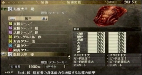 先日、装甲の「龍大甲 硬」を作ったのですが、これが思ったよりも簡単に強化できると分かり、さくっと素材を集めて強化してみました。