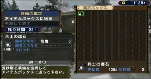 この二つはクエストクリア後にすぐさま鑑定されて、なぞのお守りは護石という新しい装備品になり、さびた塊は武器になりました。