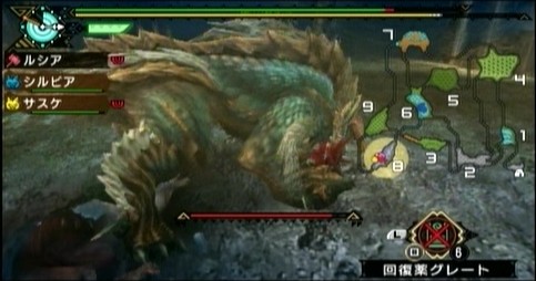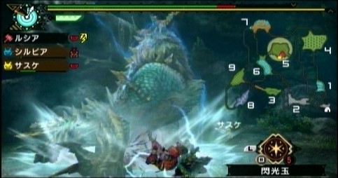 デカイ割に身軽ですが、ナルガほどトリッキーじゃない感じ。でも雷をまとった攻撃は痛く、雷属性やられ状態になります。