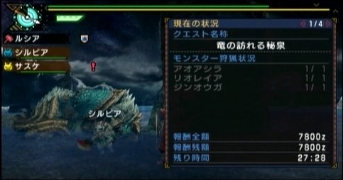 アオアシラ→リオレイア→ジンオウガの順で出てくる連続狩猟。