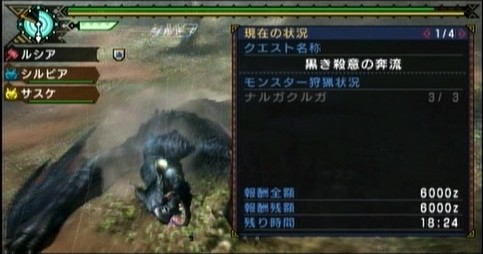 なんつーバカなクエストだ。と思いましたが、まあナルガクルガ程度ならなんとかなるか~と高をくくってたら、これが想像以上にきつかったです(ーー;)