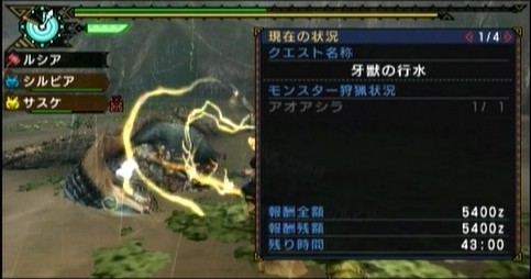 こちらは7分で捕獲。アオアシラは水属性が弱点ってわけじゃないので、これは意外と強い武器かも?