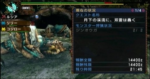 ジンオウガかー、と思ったら2頭同時狩猟。