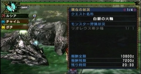 で、気になってたので集会所☆8で一番最初にやるクエストは「縄張りに侵入するべからず」のジンオウガ単体狩猟。