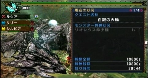 以前に「装弾数UP」で戦った時は30分で捕獲でしたが・・・・今回、「弱点特攻」で戦った結果、23分で捕獲できました!ヽ(´ー`)ノ