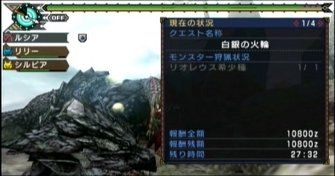 あれ・・・・前回の装備では21分で捕獲だったはず。その前にやった「弱点特化」だけの装備では23分で捕獲。