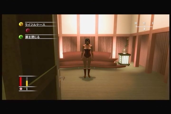 と、このステージ。一つ謎がありまして・・・・とある個室の前でいちゃついてる男女がいて、近づくと男は去って行き、女が手招きをして個室へ誘ってきます。それで個室に入るといきなり後ろを向かされて銃で撃たれました∑( ̄□ ̄;) しかも反撃しようと反撃しまいと、その騒ぎで集まってきた護衛などはその女ではなく私を撃ってくる始末・・・・