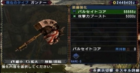 作ったのはハンマーの「パルセイトコア」(攻撃力200→215、龍属性35、会心率-5%)。