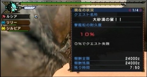 船の耐久度が残り10%で、22分でなんとか討伐できました。