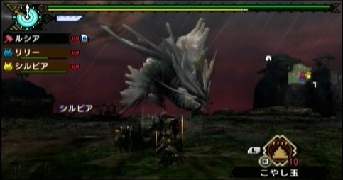 とゆーか、こういう少し浮いてる状態。リオレウスとかの低空ホバリング状態みたく、ハンマーは当てにくいんですよね・・・