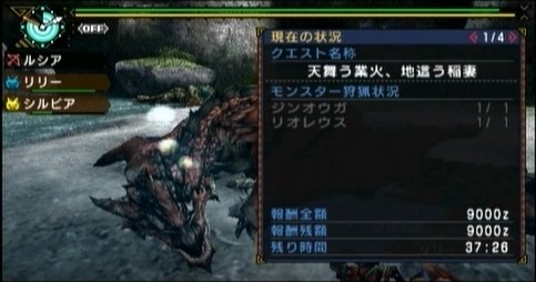 予想通り弱く、12分半でジンオウガ討伐とリオレウス捕獲完了。