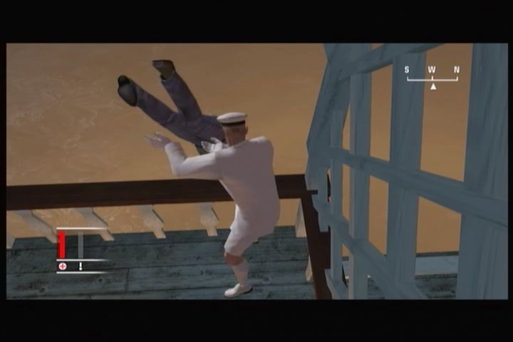 ともあれこれで大体の配置は確認完了。それで最初のターゲットは最下層でうろついてる水兵の服を奪う事。と、いつもだとピアノ線でキュっと絞めたりするのですが、今回はもっとスマートなやり方をします。