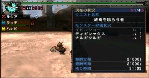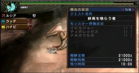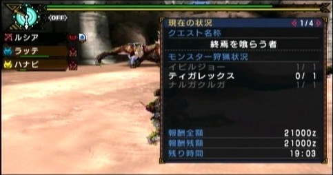 そして次はナルガクルガとティガレックスの2頭同時狩猟。