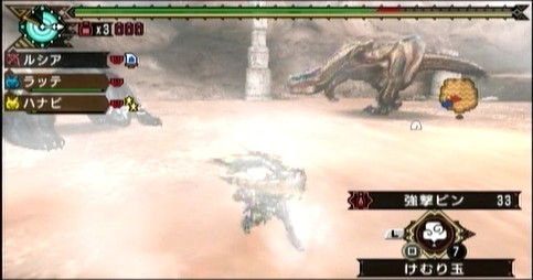 が、何度目かのけむり玉使用が遅れ、ティガレックスに見つかってしまいます。