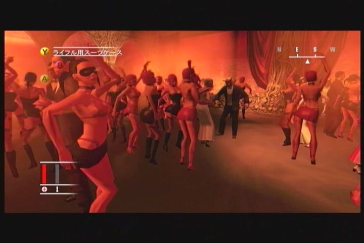駐車場には最上階のパーティ参加者の服が落ちているのでこれに着替えて、銃器を捨てて最上階へ行きます。さて、最上階のパーティなんですが・・・・・・なんですか!このエロエロコスチュームは!!!∑( ̄□ ̄;) もー、以前あったクリスマス風のエロエロパーティの上をいきますよ!(/ω\)