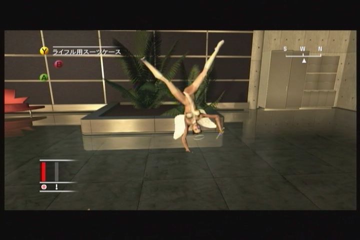 ともあれ、先ずは行動調査。最初、ターゲットの2人はそれぞれ最上階と地下に1人づついて、暫くしたら最上階の男が地下へ降りてきます。と、途中、いきなり喧嘩をふっかけてくる暗殺者(?)や、やたらエロエロな格好で誘ってきて、これまたいきなり襲ってくる奴がいるなどかなり面倒。とりあえず調べた結果の内で、一番確実そうな手でいきます。