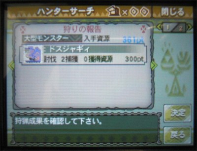 一番簡単な黄金魚を6匹納品するだけのやつですが、クリアすると食事の食材がランクアップするみたいですね。MHP3であった温泉、ドリンククエストみたいなものでしょうか?
