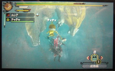 MHP3で慣れた敵も水中だと大きく化けるようで、やはり水中戦が今後の課題ですね~ |◎口◎|y-~~~