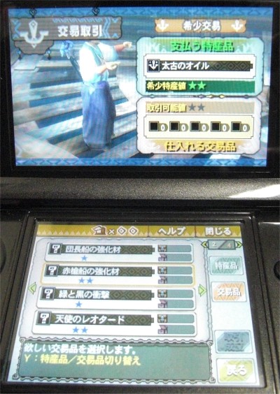 とまあ、通常と希少では手順が逆な上、途中に「戻る」とかYボタンとか挟むものだから分かりくいったらありゃしません。